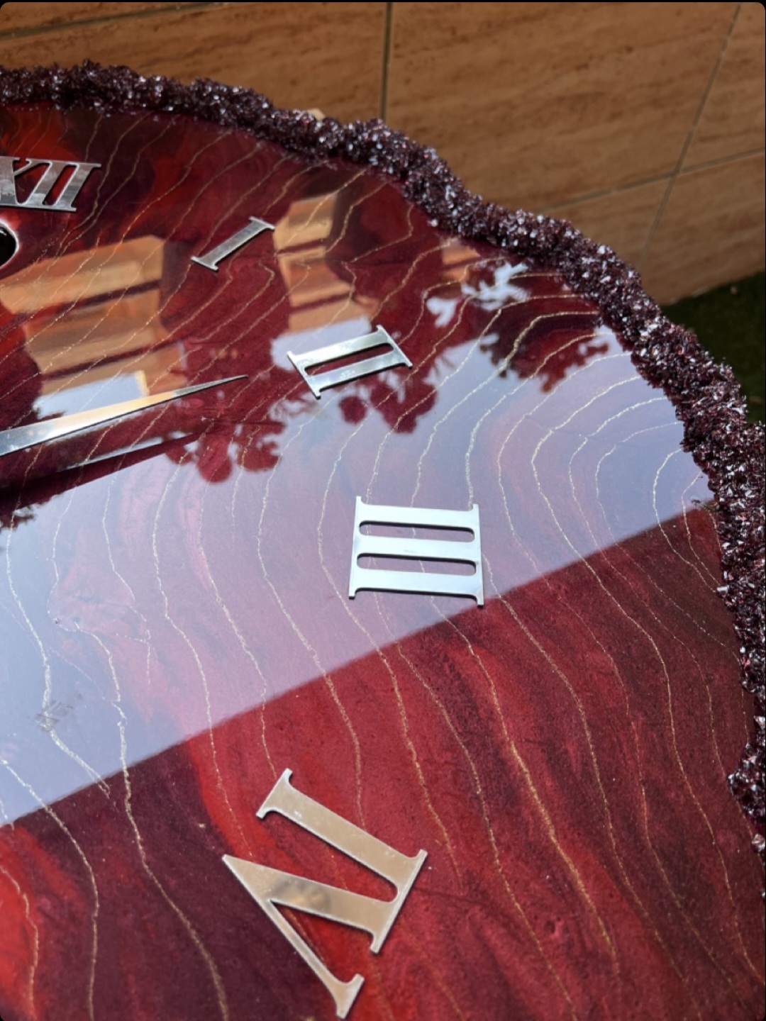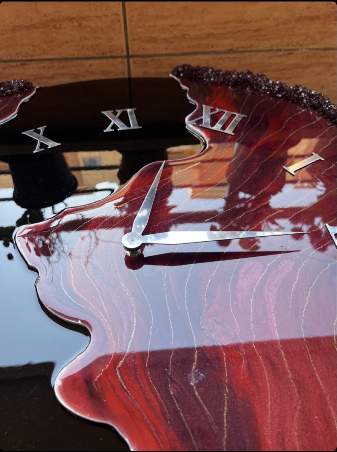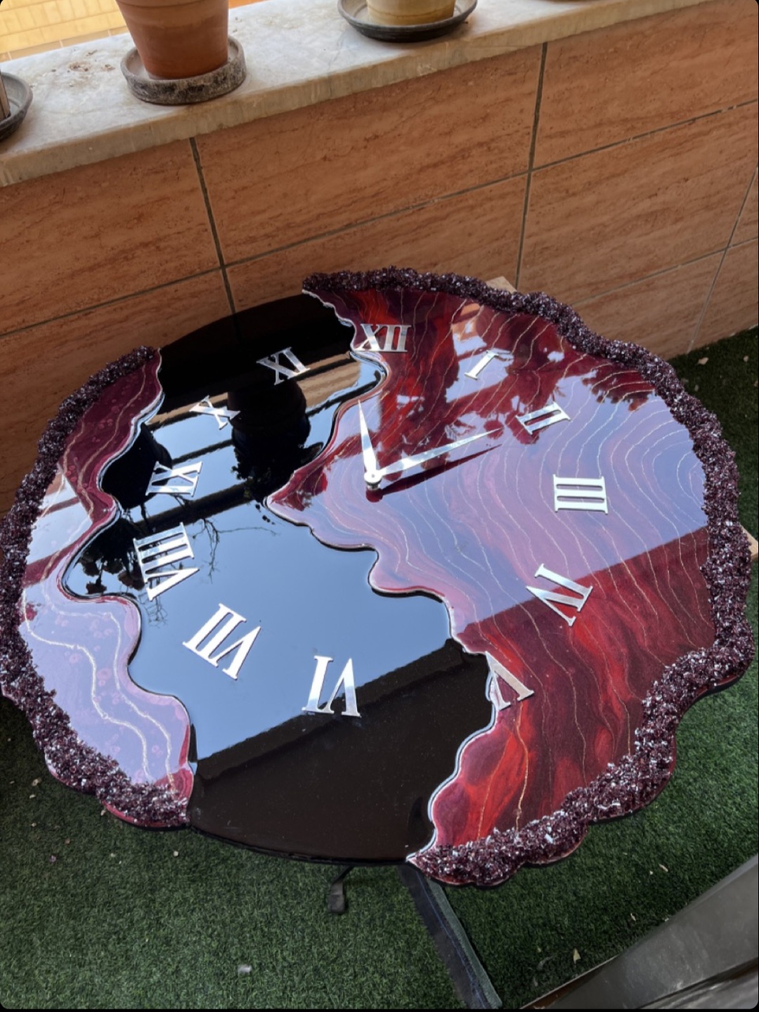 ساعت رزینی دستساز دفرمه رنگ مشکی شرابی بسیار شیک و پرطرفدار