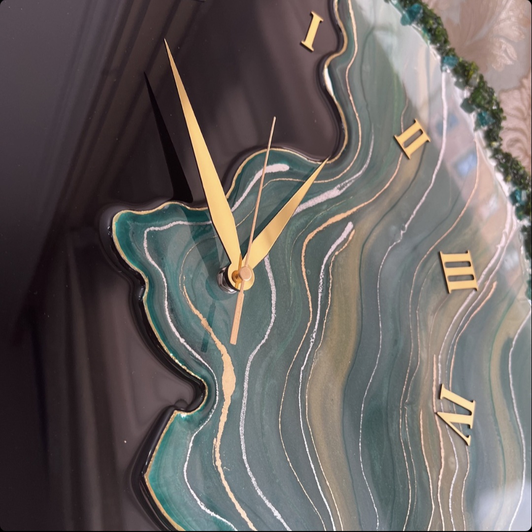 ساعت رزینی دستساز دفرمه رنگ سبز و مشکی بسیار خاص و ترند