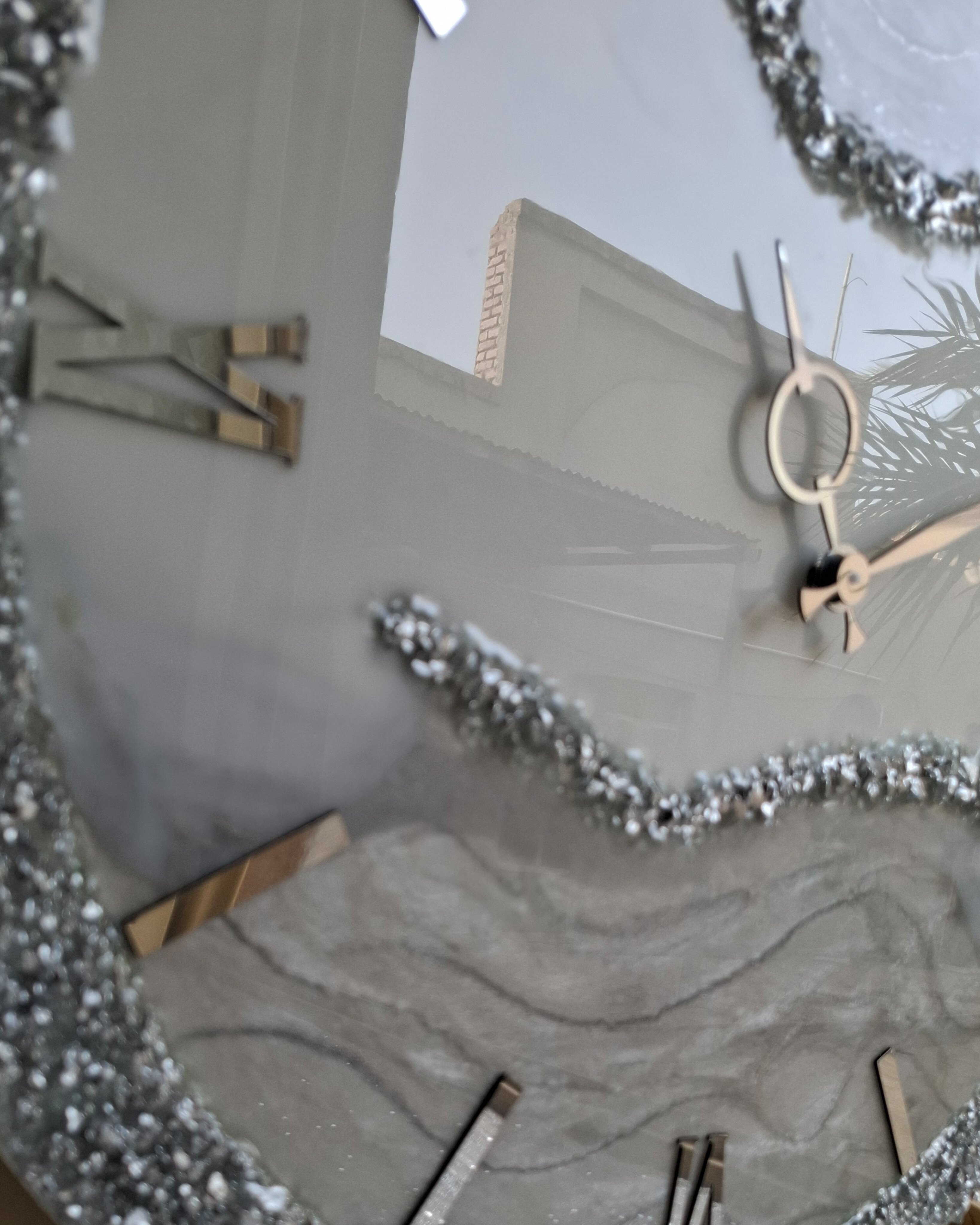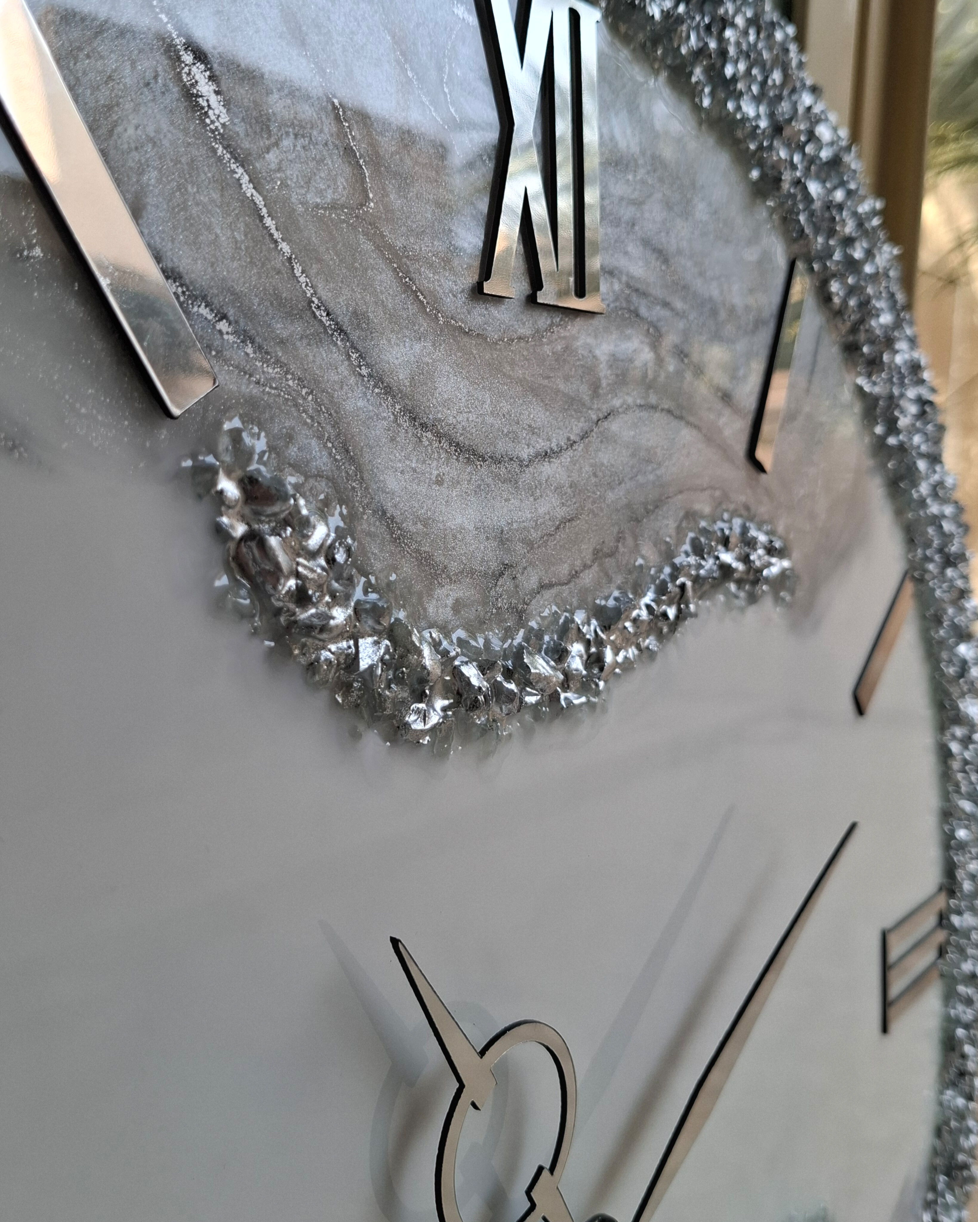 ساعت دیواری رزینی دستساز رنگ نقره ای